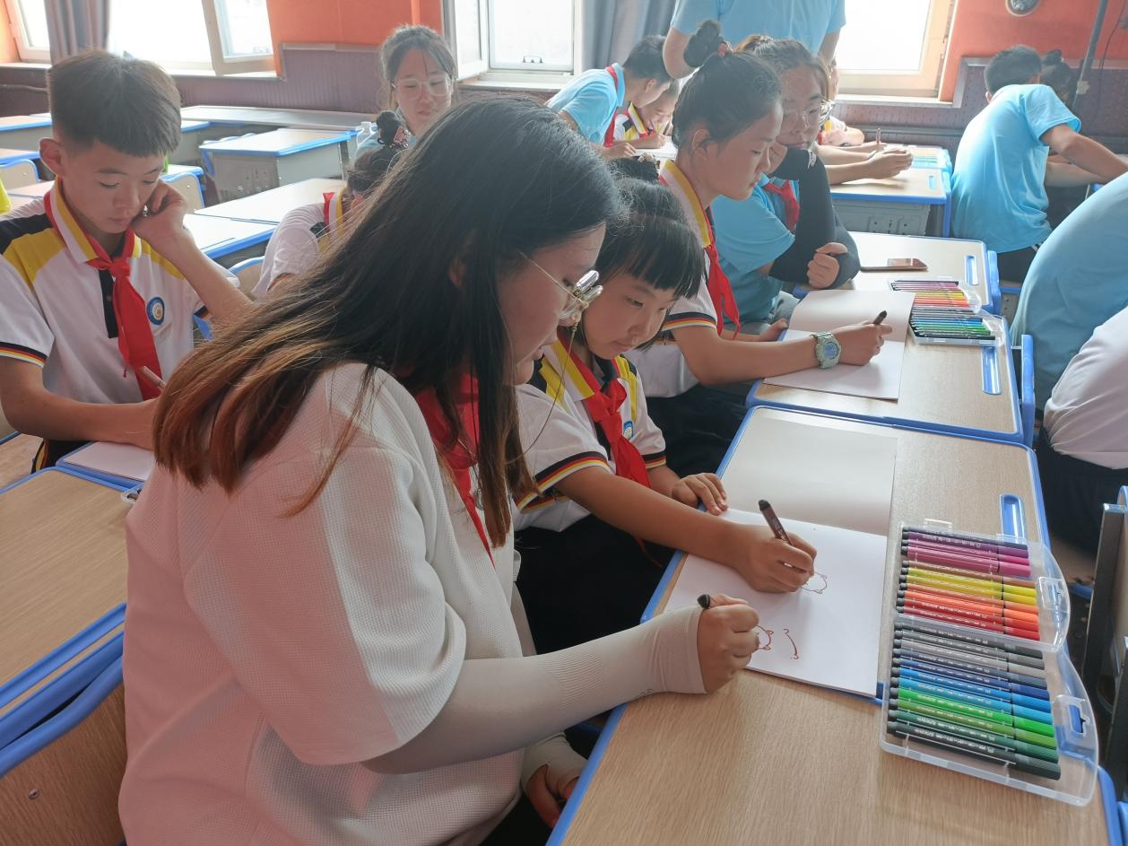 为了促进留守儿童们的艺术创作素养,社会实践团队开展了绘画小课堂。志愿者老师们向留守儿童们讲解了绘画的基本步骤、色彩搭配等,作出绘画示范,引导儿童们充分发挥自己的想象力和创造力,激发他们对绘画的喜爱以及对美的视觉感受。孩子们迫不及待的开始自己的“创作之旅”,志愿者们耐心的纠正孩子们的颜色搭配,一个个精致、富有创意的作品在孩子们手中诞生,孩子们在活动中体会到动脑动手的乐趣。